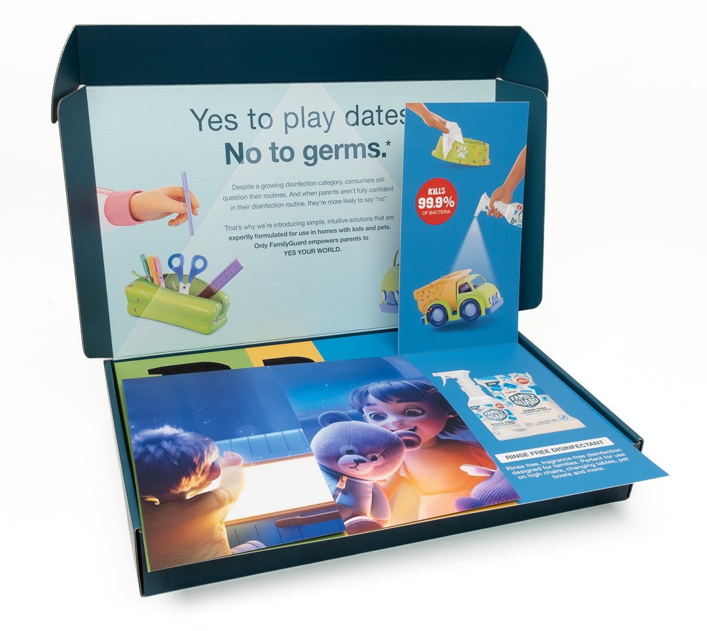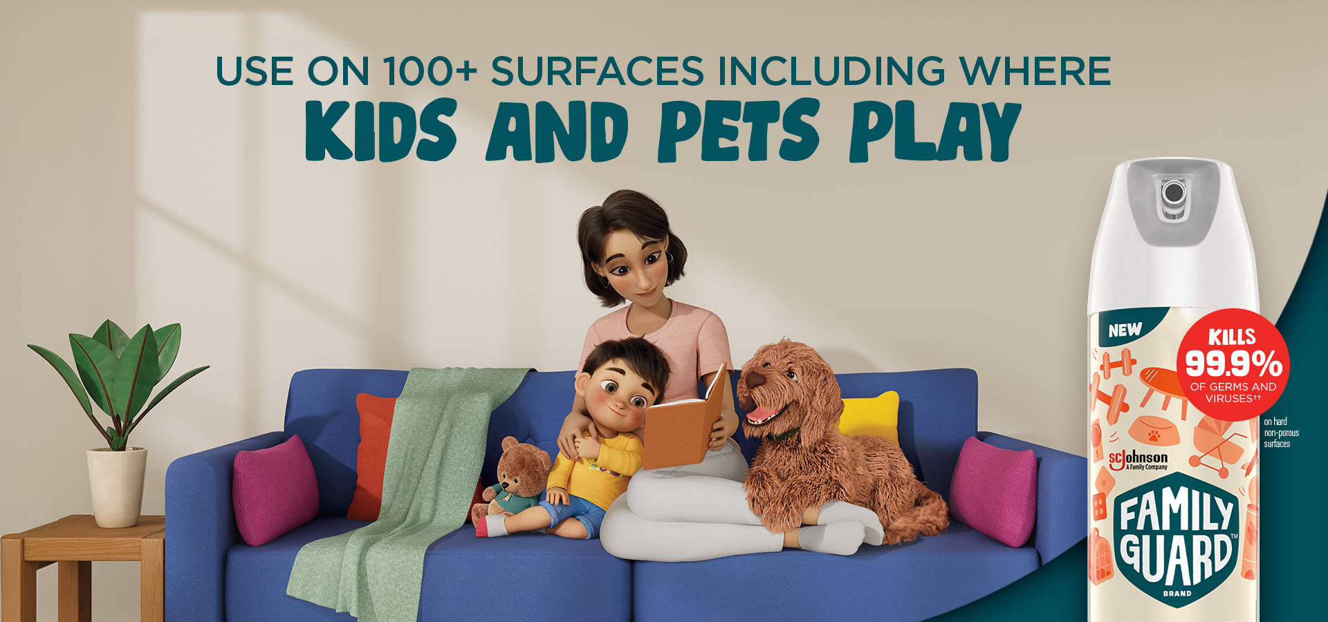 To make Family Guard stand out from the crowd we developed a retail look and feel that is unique for the category. Visuals focus on moments of disinfection and the resulting magic and connection that is possible once those surfaces are safe to touch.