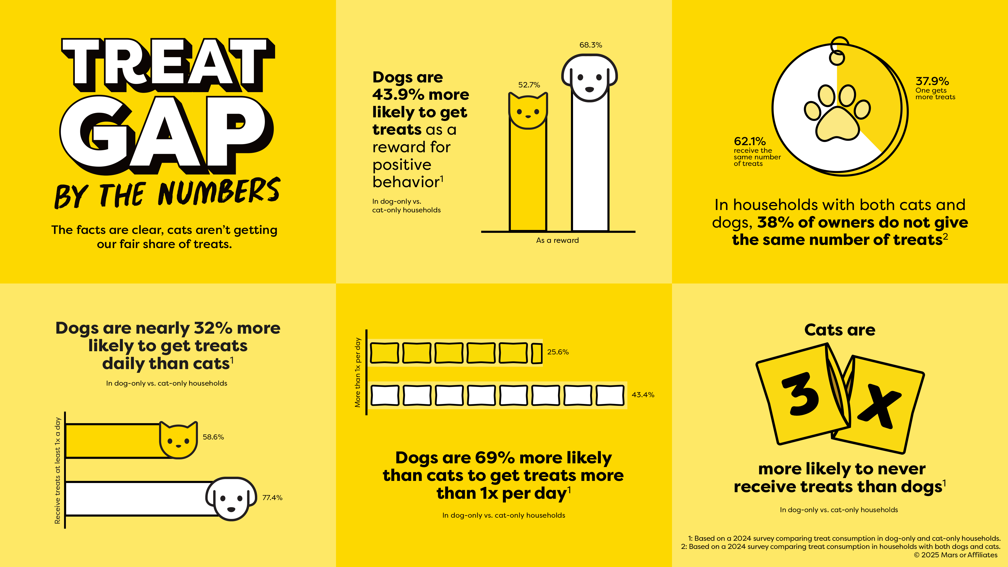 Did you know pet cats get 32% less treats daily than dogs? This disparity is what we call the Treat Gap and we’re HISSED about it.